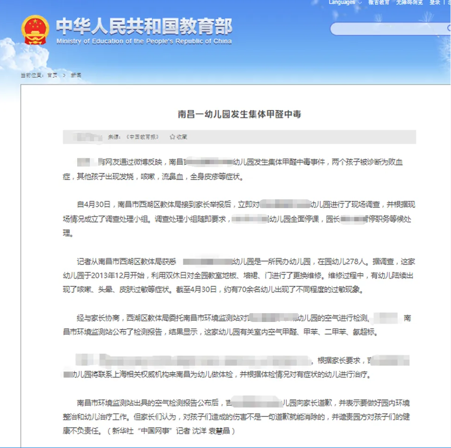 中小学及幼儿园新建校舍室内甲醛隐患